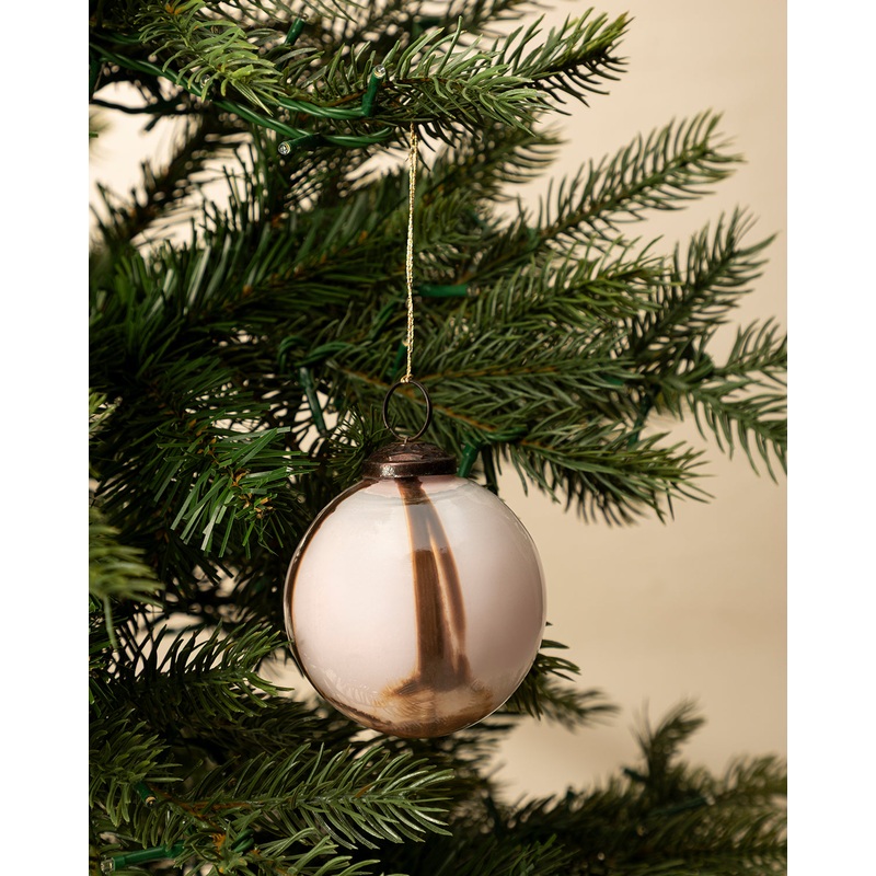 Modern with a vintage nod, our Striped Glass Ornament brings a sophisticated glow to your holiday tree. Featuring a hand-blown glass form with bold vertical striping and a soft pearlescent finish, it adds refined contrast and timeless beauty to your festive dcor.