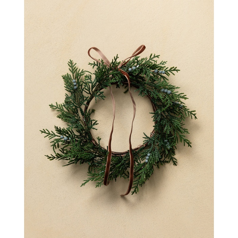 Textured and traditional, the 8″ Faux Blueberry & Juniper Wreath gives holiday decor an elevated, whimsical nod. This faux greenery offers all the warmth of juniper without any of the mess. Timeless in both its construction and style, this piece is a staple of holiday scenes year after year.