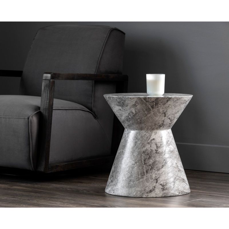 The perfect finishing touch to your chic outdoor living space is this eye-catching Adonis Outdoor End Table. Ideal for indoor or outdoor covered spaces, the unique design of this accent table will beautifully complement your modern dcor. This round, concrete table features a tapered design and showcases a sleek grey marble look finish; neutral enough to blend in with your furnishings but interesting enough to make a bold statement. Update your decor today with this versatile end table that will look stunning just about anywhere.