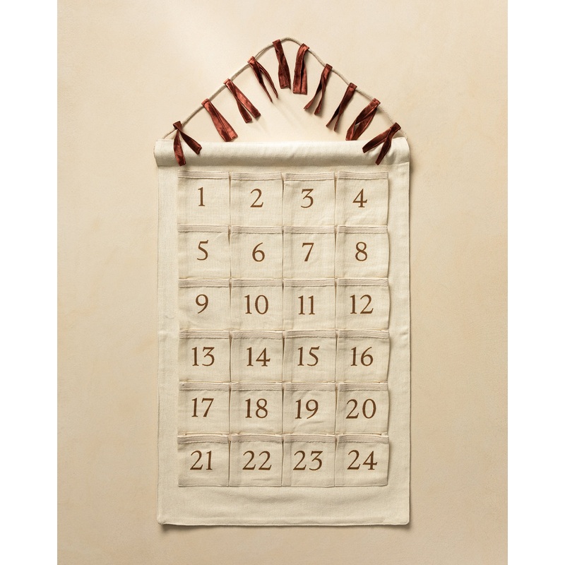 Building playful anticipation for the holiday, the Advent Calendar uses bows and simple, classic details to create a new seasonal tradition for your family. Made from a blend of cotton and linen, the calendar is warm and welcoming year after year.
