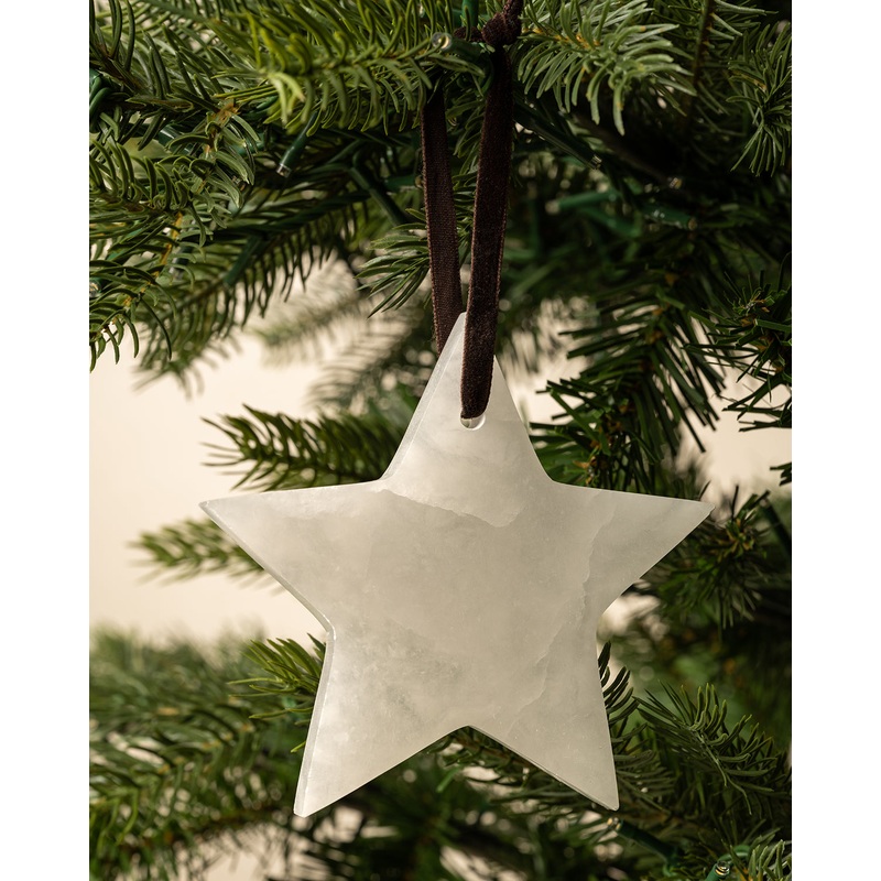 With beautiful simplicity, the Alabaster Star Ornaments bring elevated material and tonal contrast to your tree. The white star is hung on a dark ribbon for a sophisticated and festive feel.