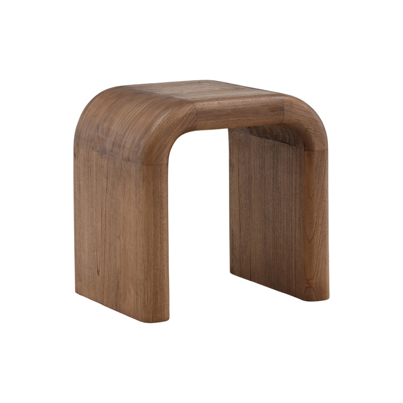 This minimalist stool or side table is a celebration of clean lines and natural materials. Crafted from solid wood, its seamless, U-shaped silhouette features smooth, rounded corners. The natural grain of the wood adds warmth and an organic texture to its modern form, making it a versatile and timeless accent for any space.