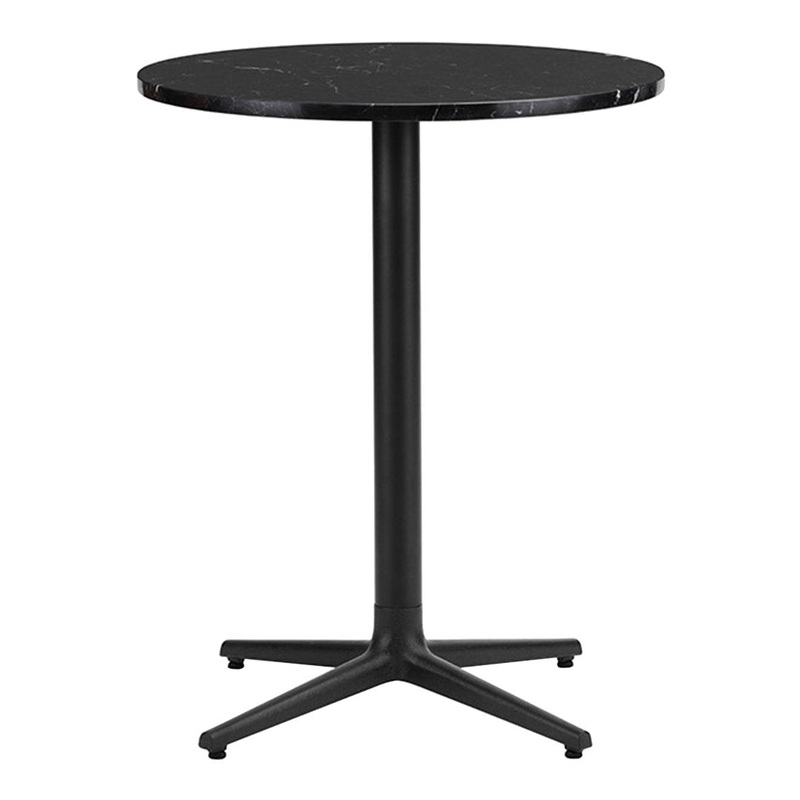 Allez table consist of a center base in cast iron with three or four legs. The tabletop comes in various sizes and shapes available in marble, Veneer, or brushed stainless steel. Allez table is suitable for indoor or outdoor use. The table is delivered flat-packed and must be assembled using the included tools. The tabletop is mounted with four screws.The marble tabletops are treated with a surface treatment that penetrates into the material and thereby provides a long-term protection. The surface should not be exposed to acidic foods or beverages, which can leave stains on the surface.