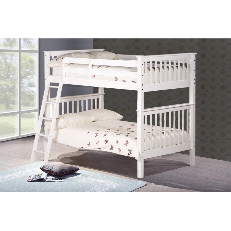 The Oxford Bunk Bed in Whiteis a traditionally styledbunk bed, from the reputable supplier, Amani. The Bunk Bed is presented in a beautiful white design in a traditional style that you and your children will love. The bunk bed comes with asturdy ladder which makes it easier to climb up to the top of the bed. It is constructed using high quality materials for increased stability and sturdiness and is finished in alovely white finish.The Bunk Bed can also be split in two single beds if necessary, as your children get older.