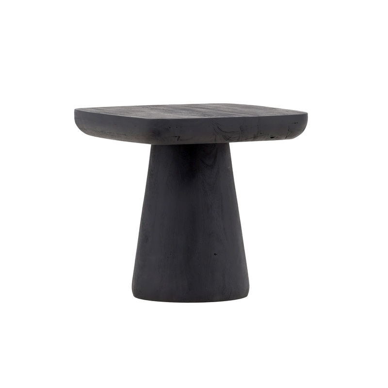 This modern accent table is a study in clean geometry and powerful design. A smooth, squared top rests on a bold, tapered base, both finished in a deep, dark wood that highlights a subtle grain. This piece makes a strong statement and provides a functional surface for any living area.