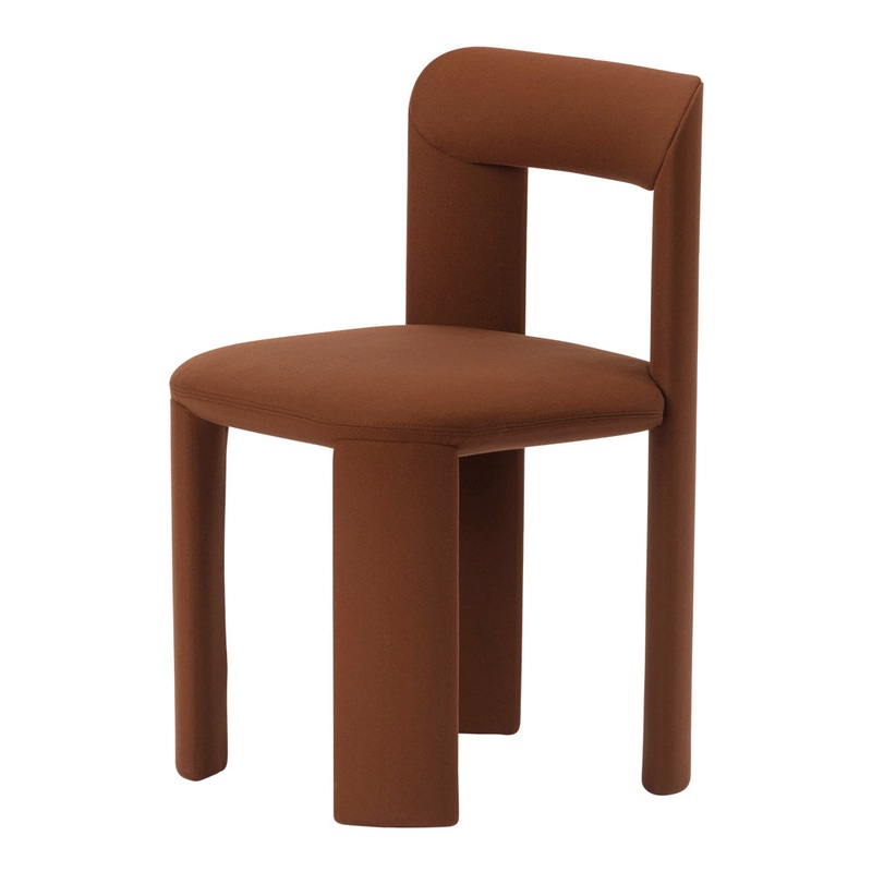 Amia is our new chair in fabric. A piquant personality shines through the upholstery, expressed in swift, defined lines, softened by rounded joints. Amia is both practical and elegant, with a simple attitude and a carefully thought-out design: the legs mirror each other cross-wise, forming a subtly squared backrest as a distinctive feature
