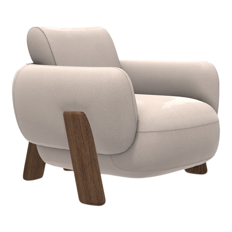 The soft and round shapes of the Anam armchair appear to be sculpted in air,resting on columns as if belonging to a parallel world, reigned by balance.