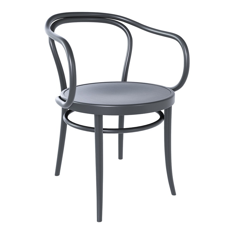 This armchair with an open backrest comes from TONs traditional line of products. Typical are: its timeless shape and versatile usage. The seat can be made of plywood, it can be upholstered or covered with cane.