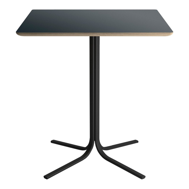 The Atal bistrot table has a central metal leg. The top can be covered of solid oak or laminated. Round or square, it is available in several sizes.