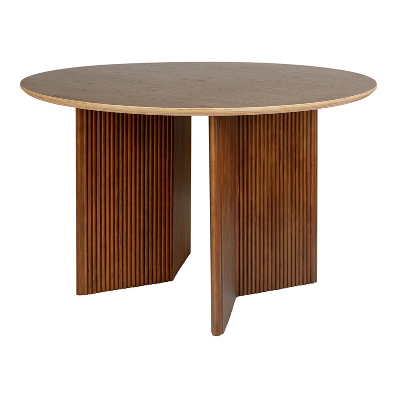 Atwell is a contemporary table collection that draws inspiration from Neo-Classical motifs. Available as a round or rectangular design, this table features a striking dual chevron base with scalloped, solid wood detailing that feels both elegant and monumental. With warm wood grain throughout, Atwell borrows design details, like an exposed ply edge, from Mid-Century Scandinavian precedents. More than just a stylish dining table, this designs proportions are perfectly suited for use as a captivating desk. Choose the round version to seat four, or the rectangular to host up to six.