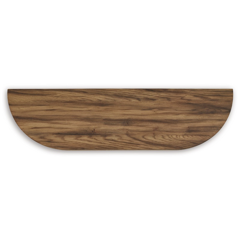 Showcasing an elevated, artistic silhouette, this sofa table expertly blends modern form and function. Its warm brown finish highlights the stunning wood grain, bringing an earthy element to staging your decor or a sofa-side lamp. Complete with a thick, substantial top, its a naturally beautiful living room staple in the making.