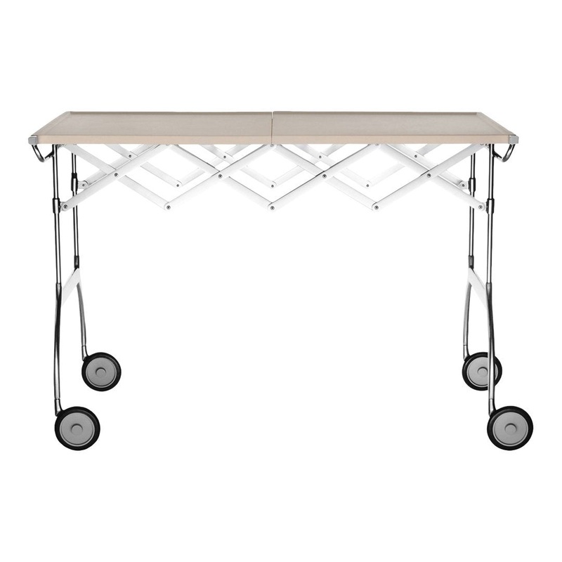 Brilliant and multifunctional, especially in small spaces, the Kartell Battista is the perfect combination between plastic and a metal structure. Battista can be used as a cocktail bar, a mobile coffee cart in the office, for entertaining, or as practical as a fully functional table.