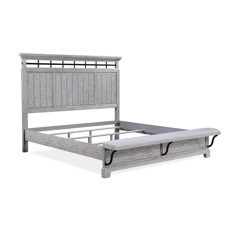 This bedroom suite offers a refreshing take on rustic charm, featuring a soft finish that highlights the natural wood grain. The sturdy bed stands as the centerpiece with its robust headboard and inviting design, while the accompanying pieces a nightstand, dresser, and chest provide ample storage, each fitted with understated hardware that accentuates the collection’s country-inspired look.
