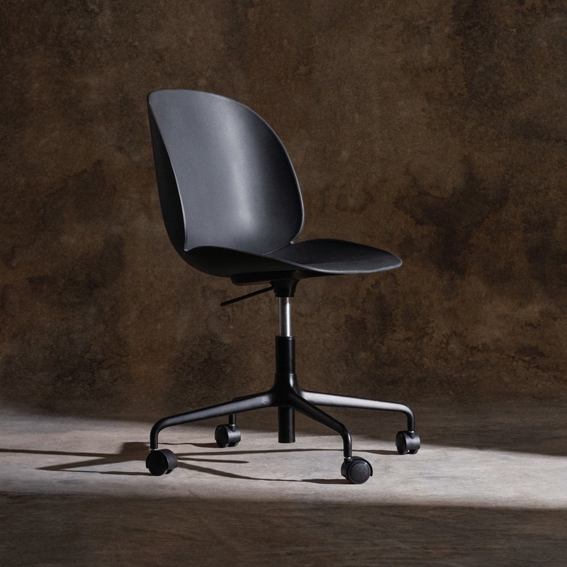 The Beetle Chair from GamFratesi was an instant classic when it launched in 2013, and the many new configurations that have been added since have made it suitable to almost any space and type of usage. Reinterpreting the characteristic elements of the beetles sections – shape, shells, rigid outsides and soft insides GamFratesi conceived of a chair that is at the same time striking, refined, and sublimely comfortable. Now, the addition of a pneumatic height-adjustment cylinder to the 4-star meeting chairs base, with or without casters, makes it even more flexible, able to adapt to the diverse needs of the modern workplace, whether that be at home, an office, or somewhere in between.