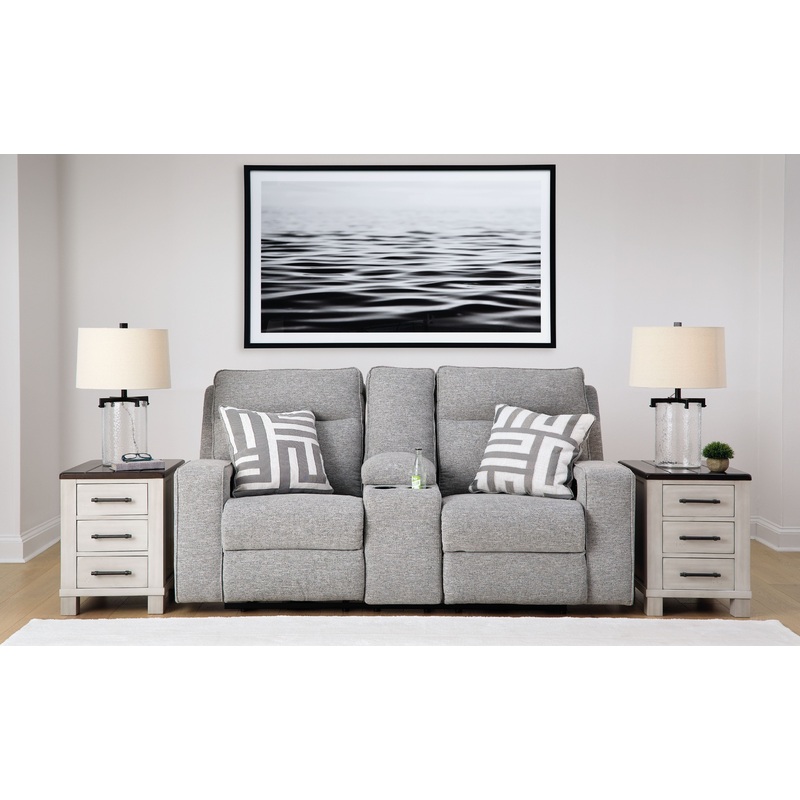 Biscoe – Pewter – Power Reclining Loveseat With Console /Adj Headrest