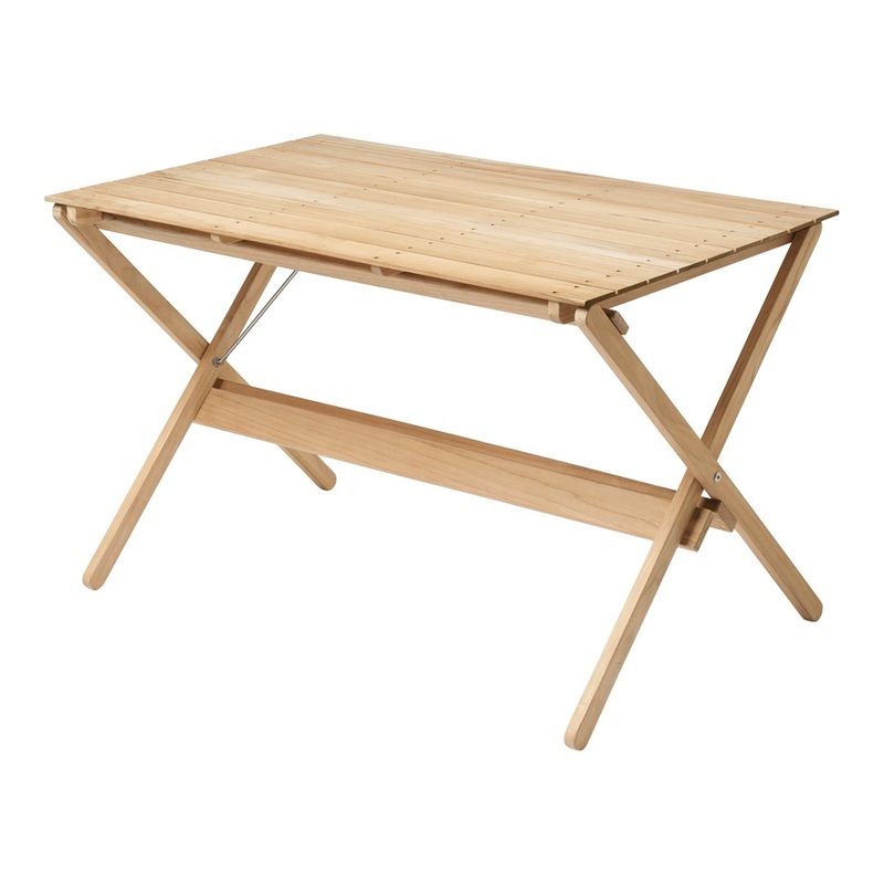 Reissued by Carl Hansen & Sn, the purposeful design helps to bring people and nature together in thoughtful and inspiring ways. The straightforward silhouette in solid, untreated and FSC-certified teak features carefully considered details that include gently rounded ends and identically spaced rivets. Originally conceived for Mogensens private balcony, the table folds flat when not in use and can be neatly hung on the series corresponding wall mount as a decorative, architectural object in its own right.