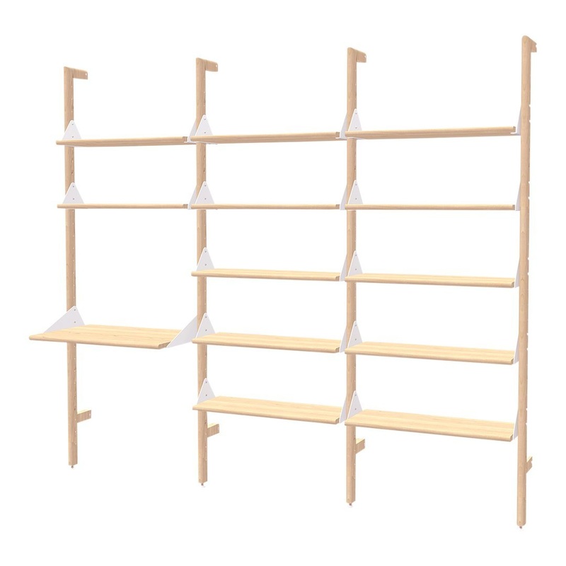 The Branch Shelving System blends mid-century style with modular components that give you an infinite number of elegant, open-storage options for home or office. The design features varying bookshelf configurations that can be transformed into a seamless workspace with the addition of a desk unit. Additional add-on units let you customize the size and layout of your shelving system to perfectly suit your space, and the shelves are height adjustable to suit any arrangement of decorative items or resources. Refined details, such as rounded edges on the shelves and uprights, soften Branchs aesthetic and enhance its architectural style. Straightforward installation means you can spend more time perfecting your vision and display.