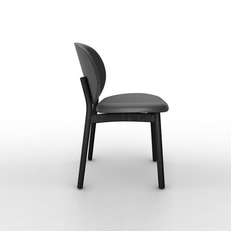 The Ines Chair is displayed in store and shown in main image in ‘S0L Ash Grey‘ upholstery and ‘P15L Matt Black’ frame.