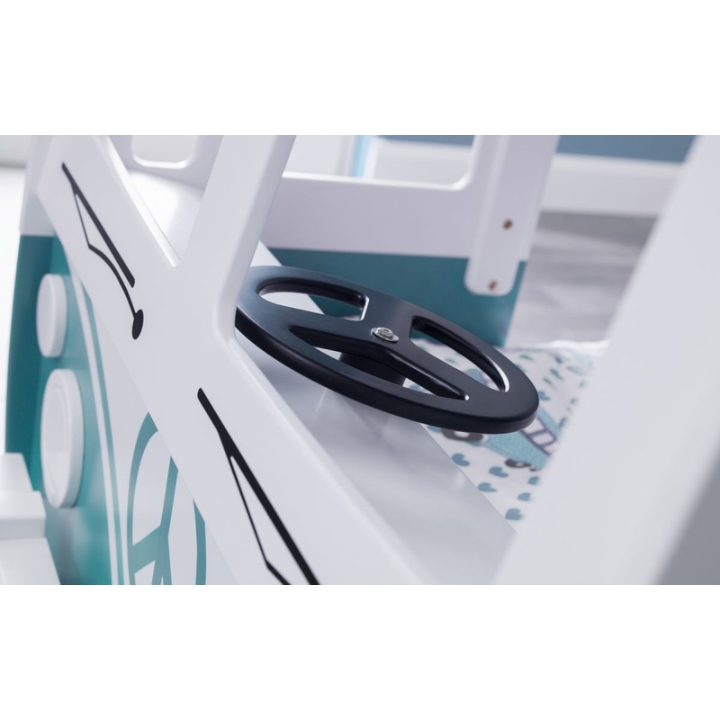 The Campervan Bunk Bed is the perfect fun design for your child’s bedroom! This beautifully crafted, sturdy bed will make your child feel secure at bedtimes, as well as providing a fun space for them to use during the day. Featuring a surfboard style ladder, steering wheel and very accurate detailing to give a realistic look.