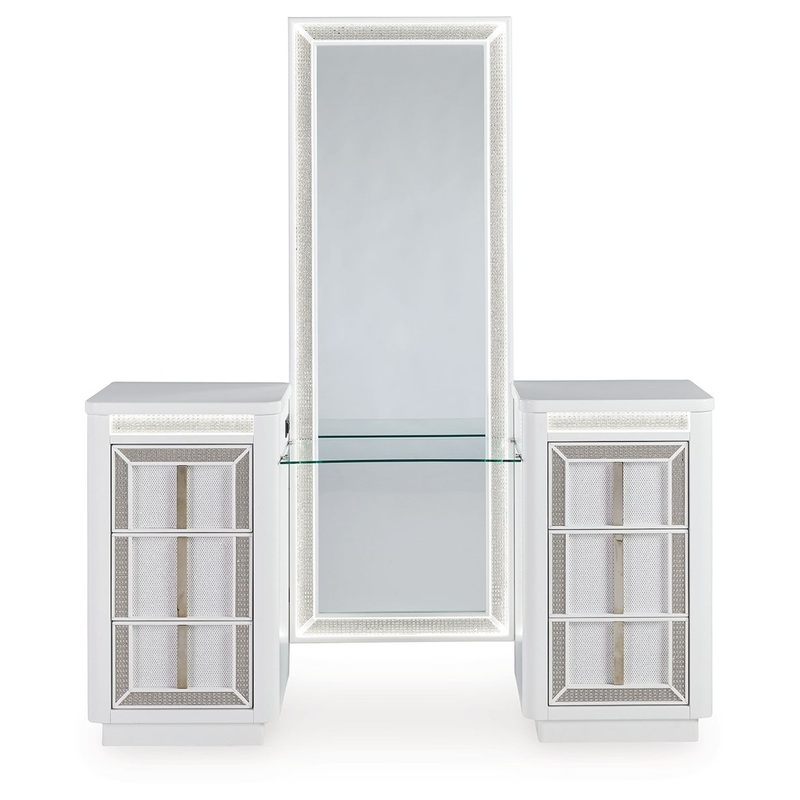Transform your bedroom with this chic vanity and mirror. Its modern design and glamorous details create a sophisticated retreat. The built-in LED lighting and rhinestone-framed drawers and mirror add style and practical storage while reflecting elegance. Let your sanctuary shineand never let anyone dull your sparkle.