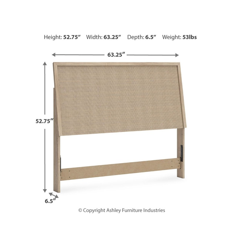 Clean-lined and contemporarybut far from starkthis panel headboard is a fresh style awakening. Pairing a light finish with replicated oak grain and textured beige cane details, its mixed materials bring a naturally versatile vibe to your bedroom. Talk about style with added dimension. Its simplicity plays perfectly with the modern aesthetic and is the stuff dreams are made of.