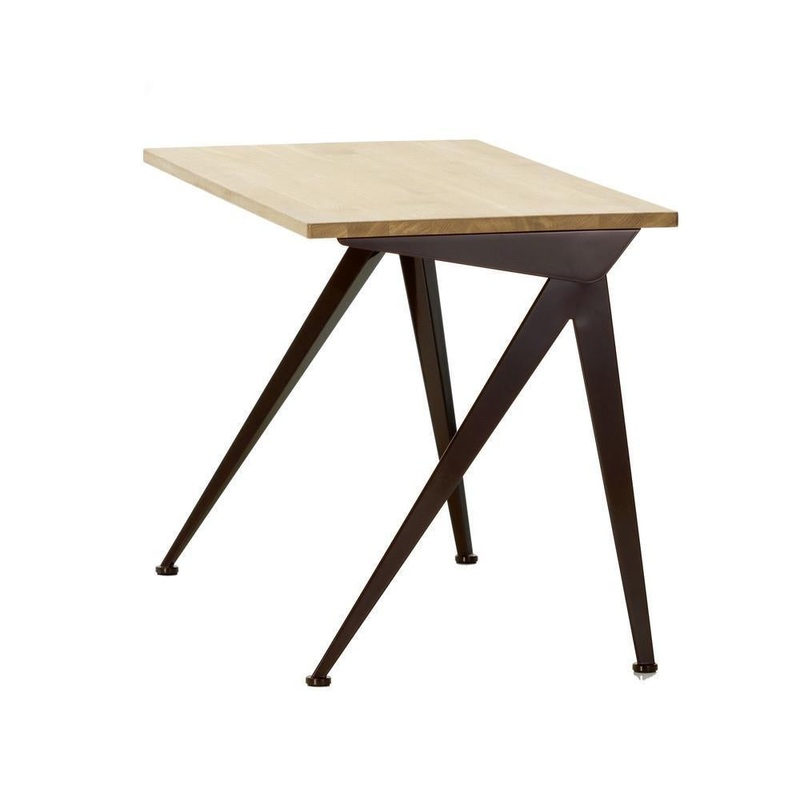 The slender, elegantly splayed metal legs of the Compas Direction desk by Jean Prouv call to mind the hinged arms of a compass le compas in French. Their design is based on engineering principles that typify the structural approach of the French designer and engineer. Paired with the oiled solid wood table tops, they form a richly contrasting mix of materials in the home office.