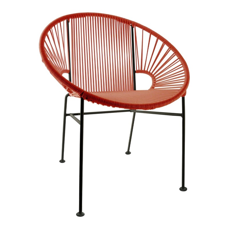 The Concha Chair – contemporary dining or caf chair, also cool as a guest chair in your living room or office and suitable for indoors and out. Composed of a metal base and seat hand-woven with solid vinyl cord. Available with white, chrome, copper or standard black frame. The galvanized steel is rust resistant and the very durable yet flexible, UV protected vinyl will stay colorfast for years. Its comfortable without a cushion, weatherproof, breathable, easy to clean, and available in everybodys favorite color. A great, modern design for commercial and residential applications. Pretty good innit