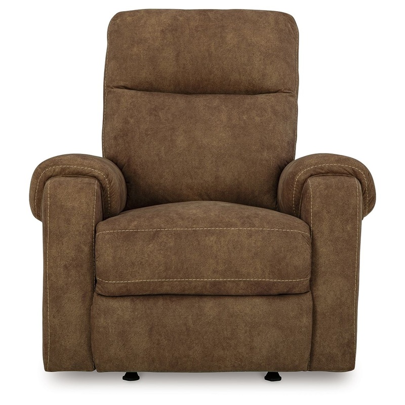 This rocker recliner is your best shot for comfort and total relaxation. Its super soft faux leather, contemporary bustle back and contrast stitching team up for a big win with most any color scheme and room decor. With the pull tab reclining motion, you can relax completely in a fully reclined position. Or you can glide effortlessly in a gentle rocking motion. You make the call.