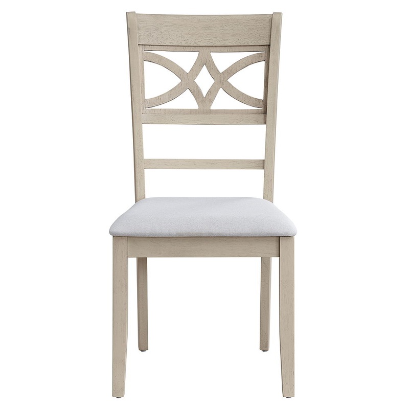 Ferris dining table boasts an antique gray finish exuding timeless elegance. The set includes chairs with intricately designed backs and padded seat cushions, ensuring comfort and style for your dining experience. Perfect for both casual meals and formal gatherings, this dining set adds a touch of sophistication to any space. Enhance your home with its classic charm and inviting design, creating a warm and welcoming dining atmosphere.