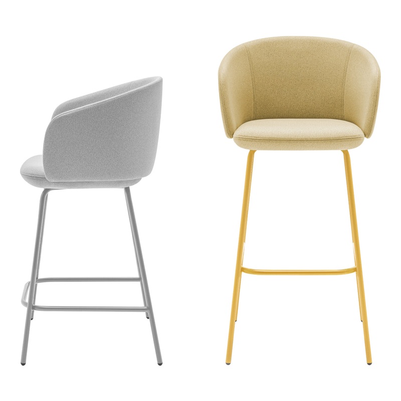 With the onset of popularity in bars and restaurants at the dawn of the XX century, high stools have consistently stormed their way into office canteens and residential interiors. Typically high stools feature a narrow and simplistic design, yet Grace takes on a different approach. The fully upholstered backrest integrated with armrests and the seat embrace the user providing superb comfort. Grace invites to take a seat for longer. Elegant framework, in two heights, ensures balance and stability, while the abundance of configuration options allows for great adaptability. Grace offers an armchair experience in a high stool edition.