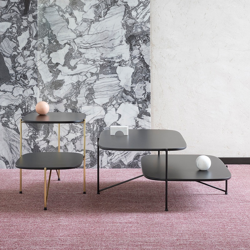 Haiku is a Japanese word used to describe a poem consisting of just three lines up to a total of seventeen syllables. The new coffee table designed by Marco Zito for Saba Italia is in fact made up of three parts the frame and the two tops. The slim architecture suspends the tops on two levels which play with the partial overlap and combinations of colours in pastel shades, in a simple and well-gauged relationship of balance and proportions.