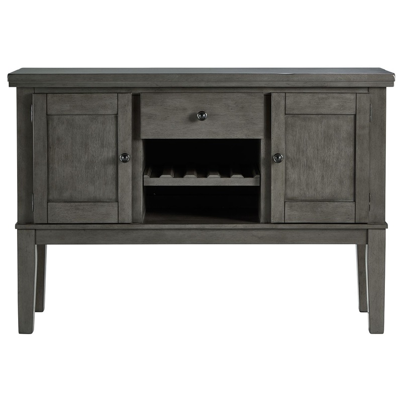 Cool and on-trend. This versatile server sports an antiqued gray color for a contemporary-yet-casual feel. The server features two cabinets, a smooth-gliding drawer and an open cubby with a wine rack, making it a breeze to clear away clutter and expand your serving space. Dining with friends and family has never been so stylish.