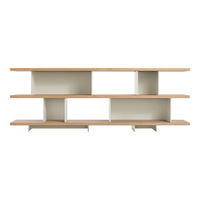 Wood shelves and metal blocks stack without the need for hardware forming beautiful voids and cubbies to house all the things in a perfectly curated manner. Two widths of foot and shelf blocks celebrate asymmetry while bringing stability and visual appeal.