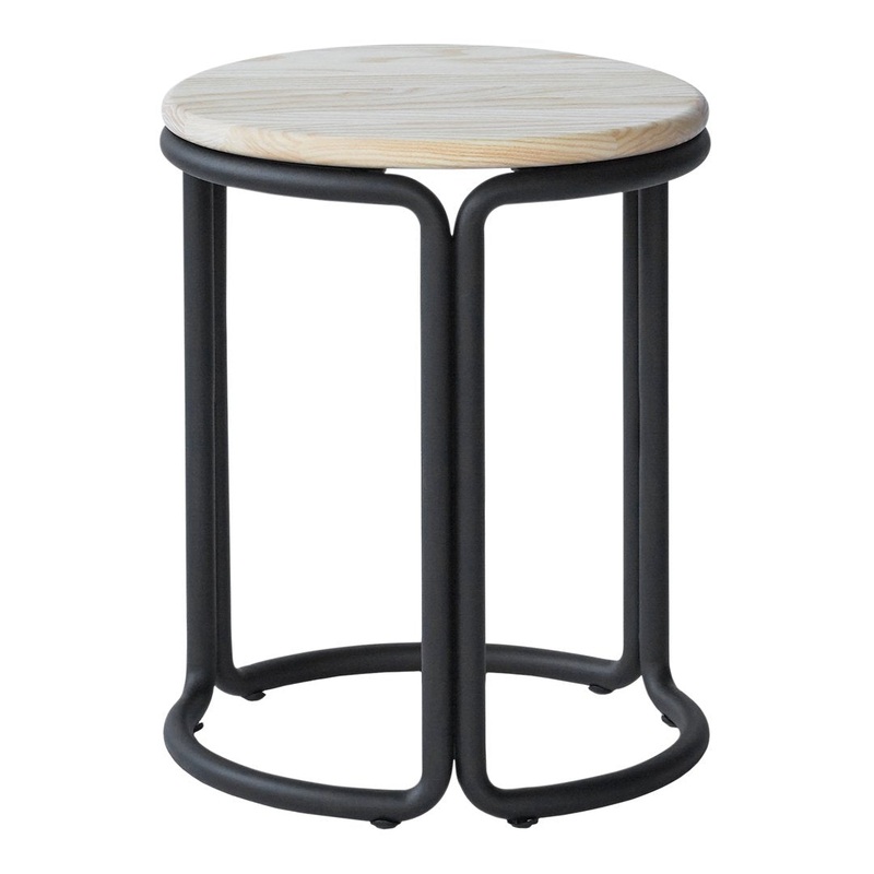 The HARDIE stool is a clean-lined and no-nonsense piece, its classic circular seat balanced by three bent metal tubular columns.