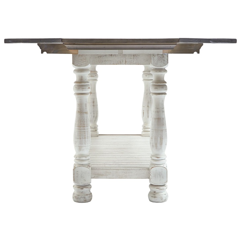 With its richly rustic finish and textural mix, the Havalance flip-top sofa table goes to town on bygone beauty. Its distressed two-tone treatment blends a weathered gray with vintage white for an utterly charming effect. Expecting company? Simply open the flip-top panels to instantly create an impromptu dining space.