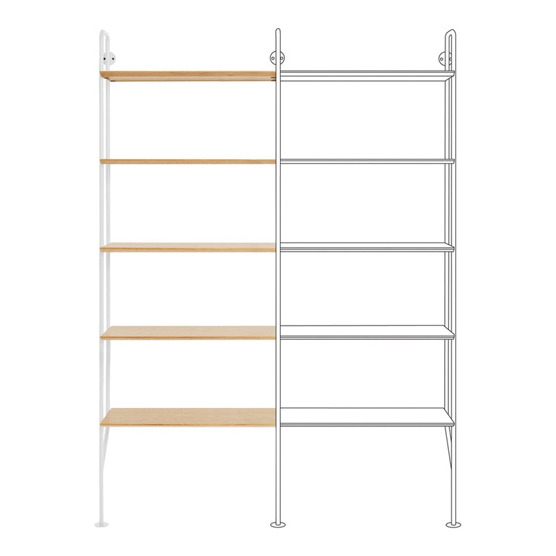 Engineered for modular expansion, the add-on includes a single powder-coated steel upright (available in multiple distinctive colors) that connects to an existing Hitch Bookcase, eliminating redundant structural elements while maintaining the visual rhythm and stability of the expanded system. This efficient design allows for unlimited horizontal extension across wall spans, creating a custom configuration tailored to your specific spatial requirements.
