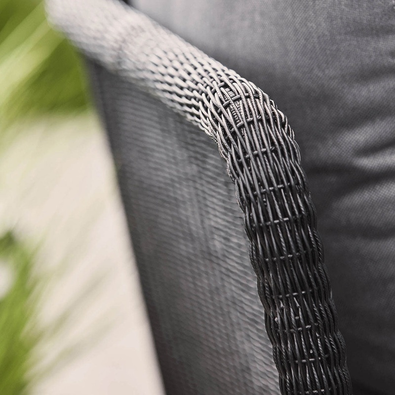 Horizon is an aesthetic and minimalistic lounge, with sharp lines and a modern expression. Horizon is a modular lounge concept based on a Scandinavian design, focusing on high comfort and flexibility. The lounge is modular and can therefore match any need, with the possibility of building your outdoor lounge area as large or small as your outdoor space allows. Horizon can stand alone as a single module, or be combined into a large corner or U-sofa. The narrow steel frame gives the lounge a slightly floating expression, which together with the woven seat forms an elegant frame on the lounge. Seat and cushions are made from the soft and comfortable Cane-line Natt fabric, which makes Horizon the perfect place for relaxation and reflection.