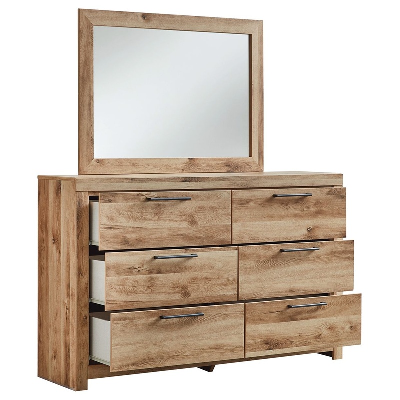 Inspired by natural beauty, refined to perfection. This dresser with mirror brings cozy outdoor vibes to your bedroom with its warm and inviting golden rustic finish. Antiqued gunmetal handles adorn the six drawers on its framed front, adding an industrial touch to the simple, streamlined design.
