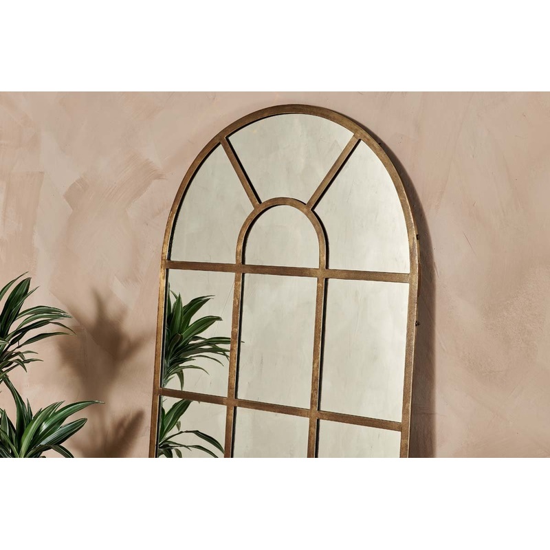 The striking architectural detail of the Imoma full length mirror makes it a glorious show piece, with the arched top and elegant windows adding to the stunning composotion of this skilfully crafted piece. The Imoma is made from iron and finished with an elegant brass finish, making it perfect as a focal point at the end of a hallway, to add interest to a living space, or simply to work well resting securely on a floor against a wall.