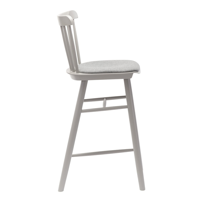 The barstool from the Ironica series is characterised by the same form as its namesake chair. The barstool is made with seven hand-finished dowels to hold the rounded backrest and is available in low and standard heights.