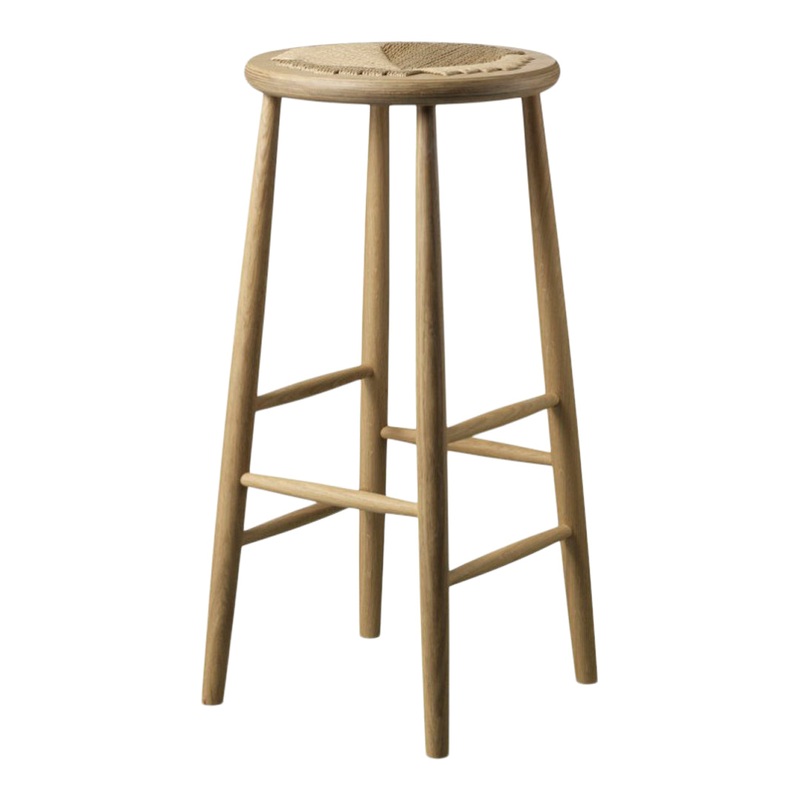 The bar stool with the round seat is an elegant and stylish option for a high chair with clean lines. With a height of 75 cm, it is a chair for a bar or a high kitchen table. It is not a type of furniture which we are used to see in wicker, but with an expression that evokes memories of some of the classic dining table chairs in Danish design, it fits into that tradition. The J165B bar stool is designed by Jorgen Bkmark and was launched on the occasion of his 90th birthday. The round seat is in paper wicker and it comes in both black lacquered oak and natural oak.
