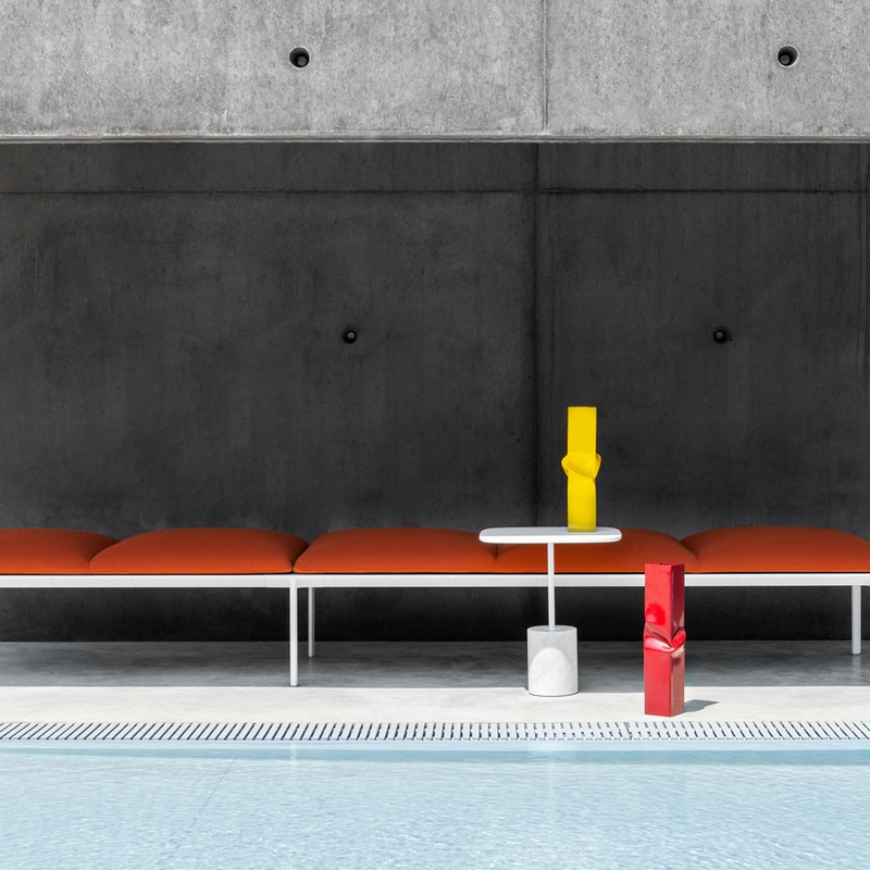 It moves by itself, it is the sky and freedom. Pure outdoor essence. The JEY table-sculpture moves easily between a sofa, an armchair or another table. A cement or marble base and a tubular column support the tabletop, available in various geometric shapes. Its handle closure ensures an elegant and easy grip. It can be plucked like a flower.