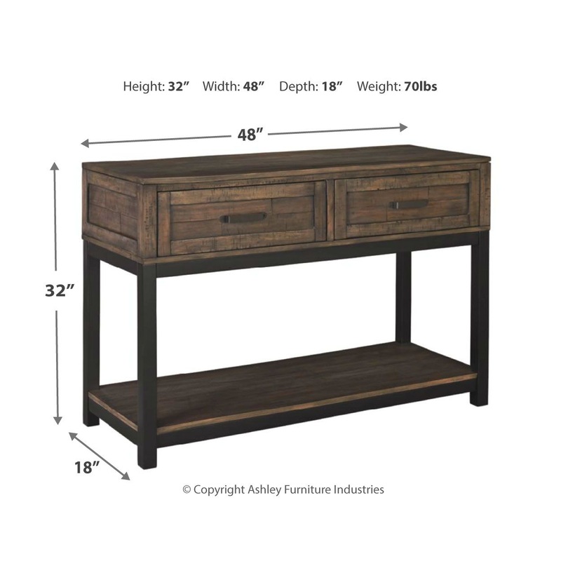 Combining a two-tone finish with a gently distressed texture produces one very distinctive sofa table. Whether your style is modern farmhouse or urban industrial, the Johurst sofa table is the perfect accent for your rustic retreat.