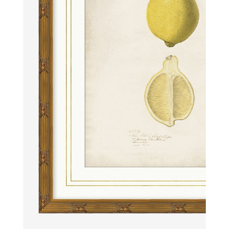 With the feel of classic illustration, color and texture take center stage in Lemon Study. The richly colored fruit stands out against the neutral background, as a good wood frame draws the eye wherever it is styled.