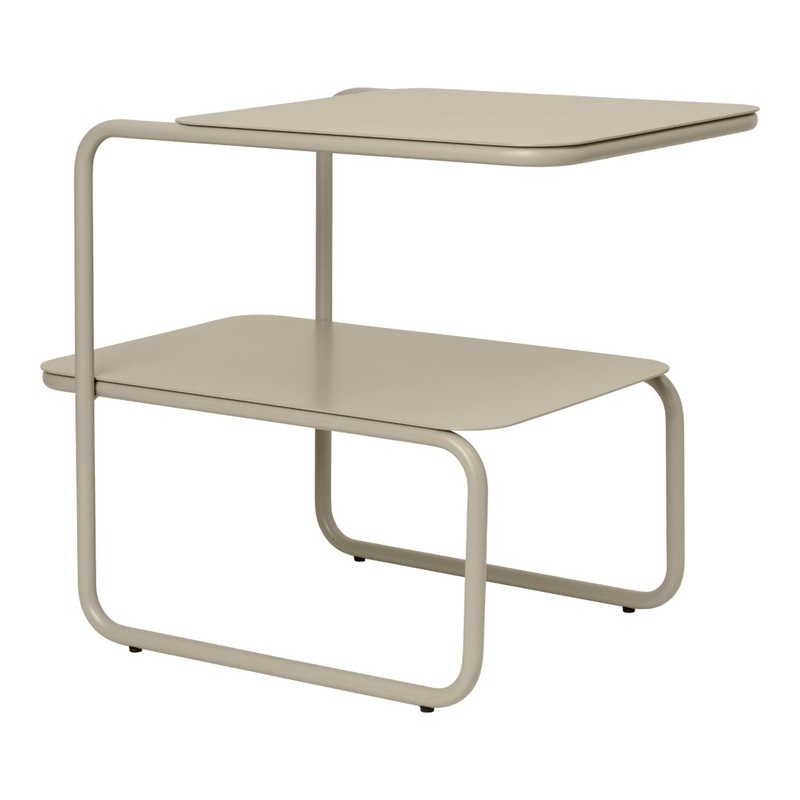 With its intriguing, asymmetrical profile, the Level Side Table presents a modern expression based on a solitary geometric form: its frame a single, continual line. With two levels that offer ample surface space, the table is ideal for extra storage. The side table is crafted from powder coated steel, and can be used both indoors and out.