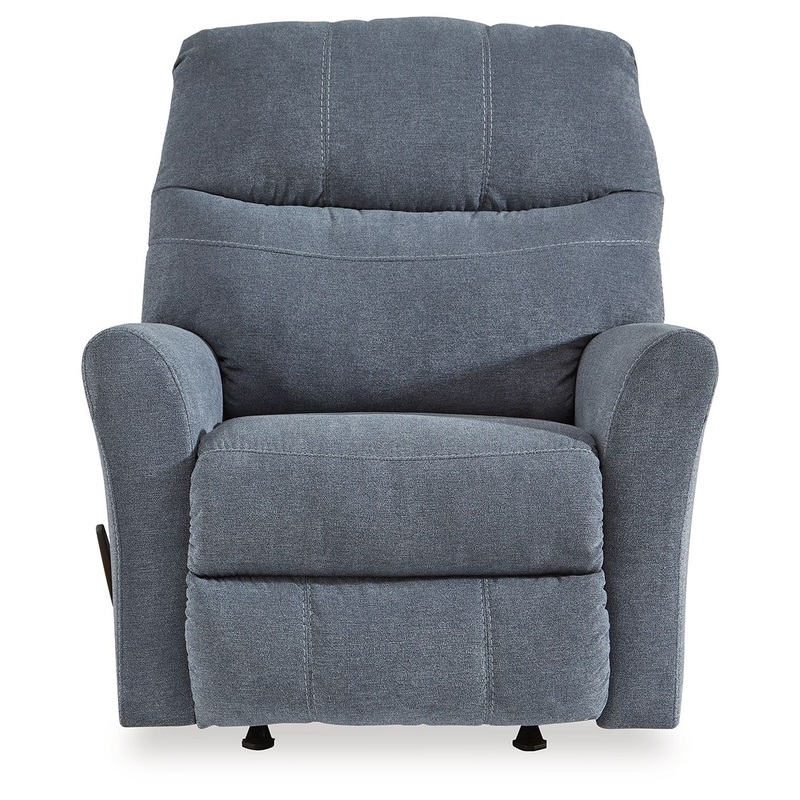 This recliner takes a homey approach to high style. Its denim-inspired fabric has classic versatility, while a contemporary silhouette and stitched details keep the look totally on trend. And you can count on comforta one-pull reclining motion seamlessly extends the ottoman.