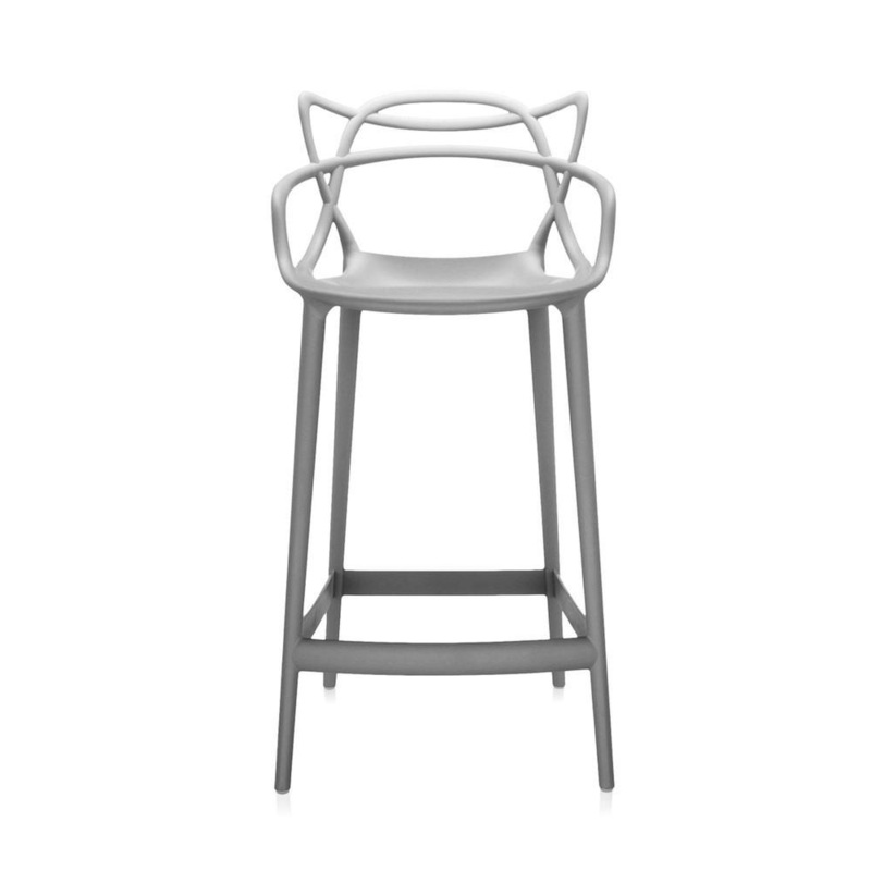 Kartell also offers a stool version of the Masters chair, winner of the Good Design Award 2010 and the Red Dot Award 2013, and a worldwide best seller. The legs are lengthened and the seat shrunk, but the frame’s unmistakable graphic look, created by the weave of the silhouettes of three iconic chairs, remains the same. Ideal for both the home and contract sectors, Masters Stool is equally at ease indoors and out.