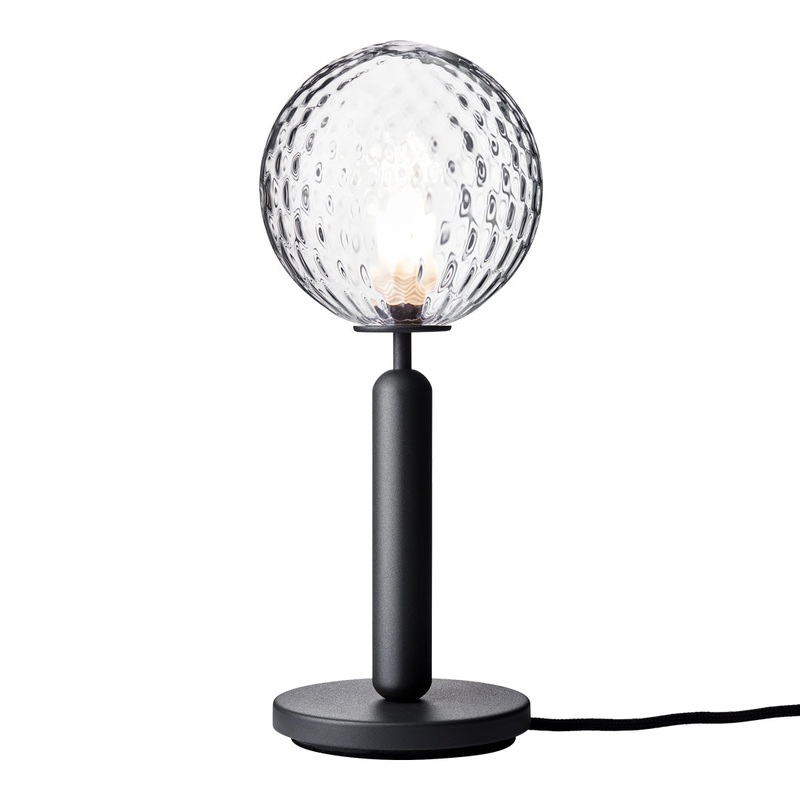 Table lamp in contrasting metal finish and glass. The Miira Table lamp makes a bold impression with a minimum of complexity and is set on a solid, round foot and topped with a neatly mouth-blown glass shade. Cable with on/off switch.