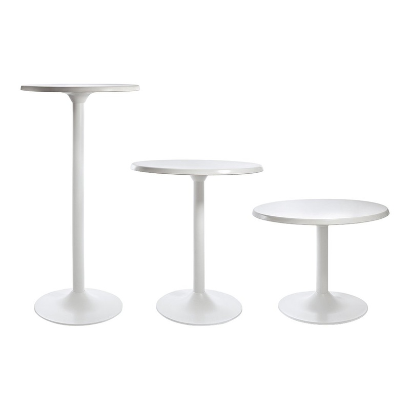 Table with painted aluminum base. Available in three different heights and tops of different sizes and materials.