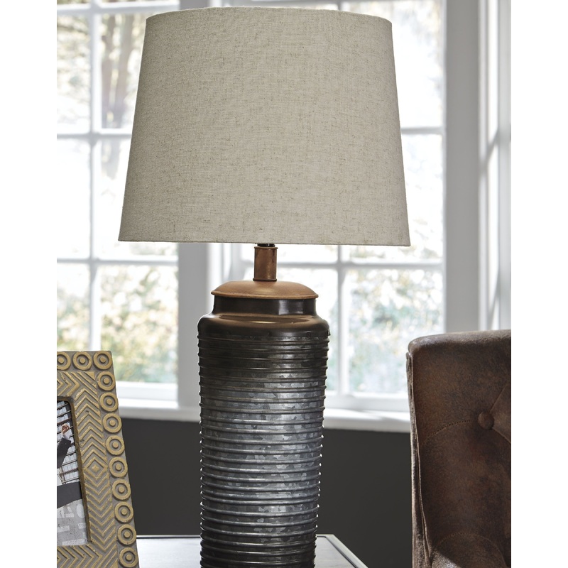 Grace your space with the earthy elegance of this metal table lamp. A top-and-bottom ombre effect on the galvanized metal base is delightfully different. Ribbed texturing adds that much more interest.